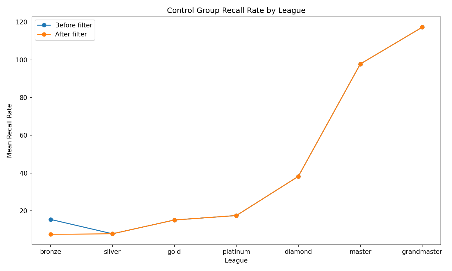 Figure 1. Control group recall rate within Bronze league.